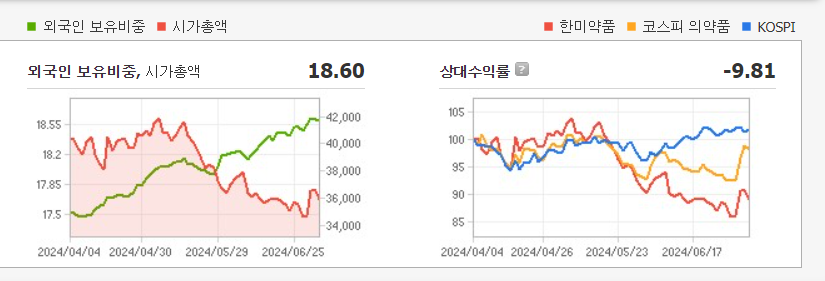 단기 포트폴리오를 구성할 시에는 시가 총액과 장중 거래량도 살펴봐야 합니다. 한미약품의 시가 총액은 3조5679억 원이며 장중 거래량은 37,119원 을 기록했습니다. 대주주의 정보는 크게 중요하지 않지만 장기적인 관점에서는 확인해보는 것이 좋겠습니다.
