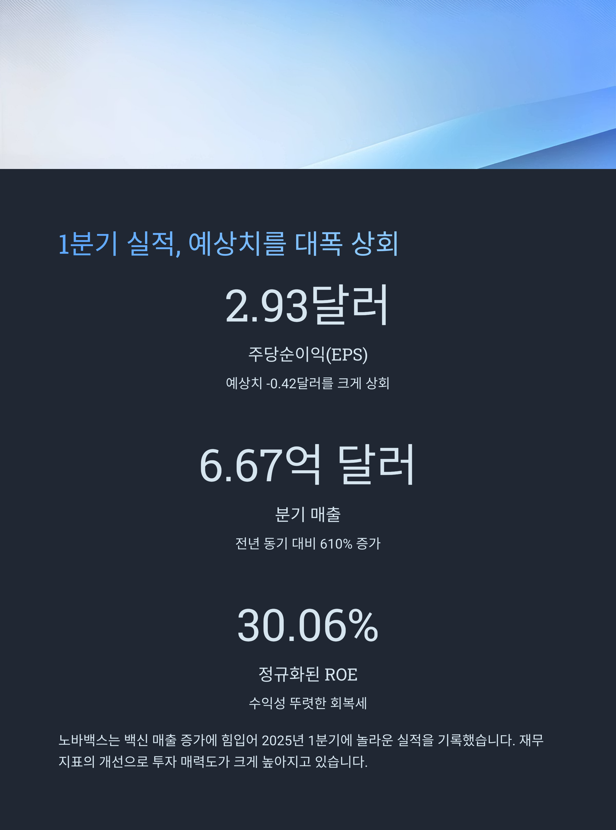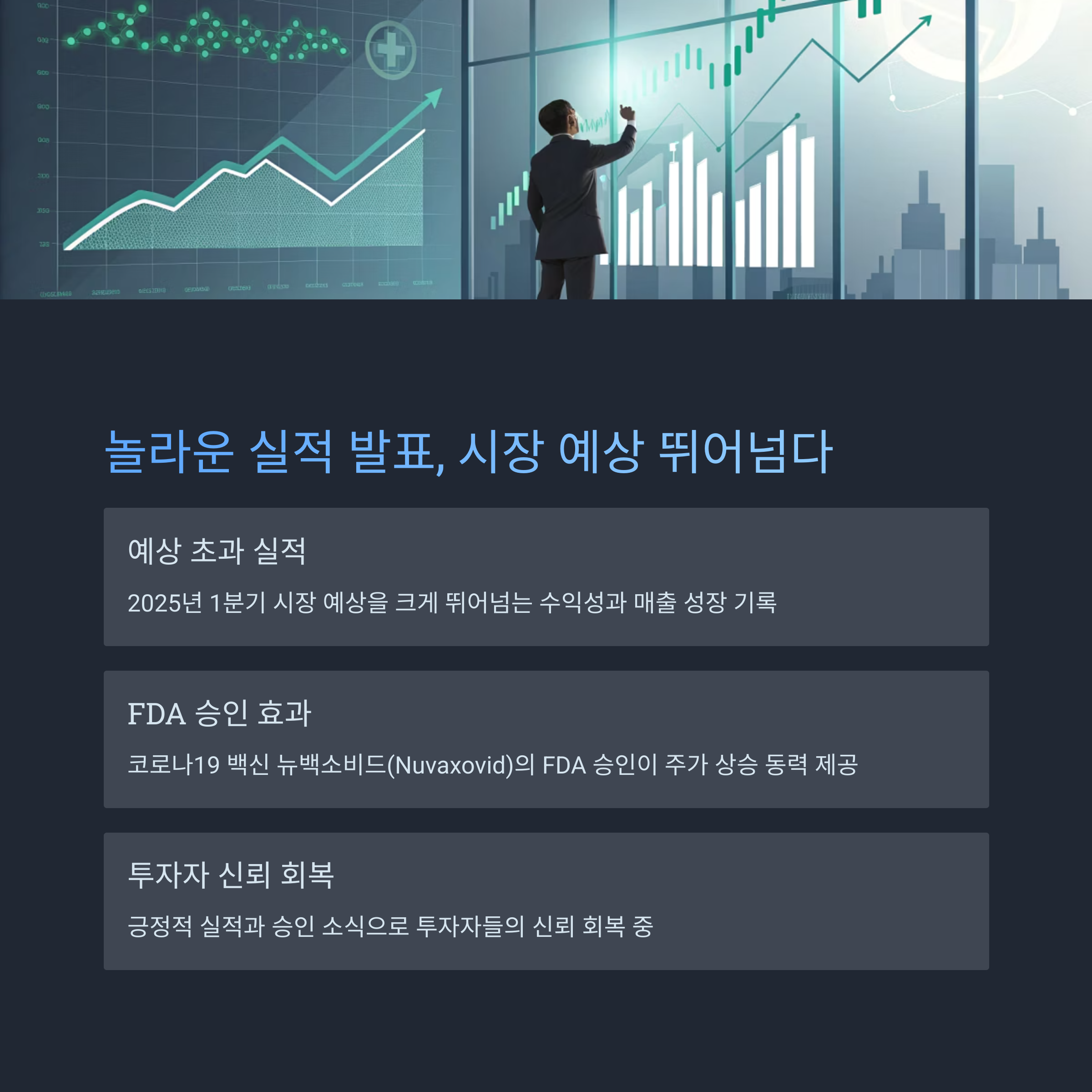 2025년 1분기 실적 발표 이후, 노바백스는 시장 예상을 크게 뛰어넘는 수익성과 매출 성장을 기록하며 투자자들에게 신뢰를 다시 얻고 있습니다.