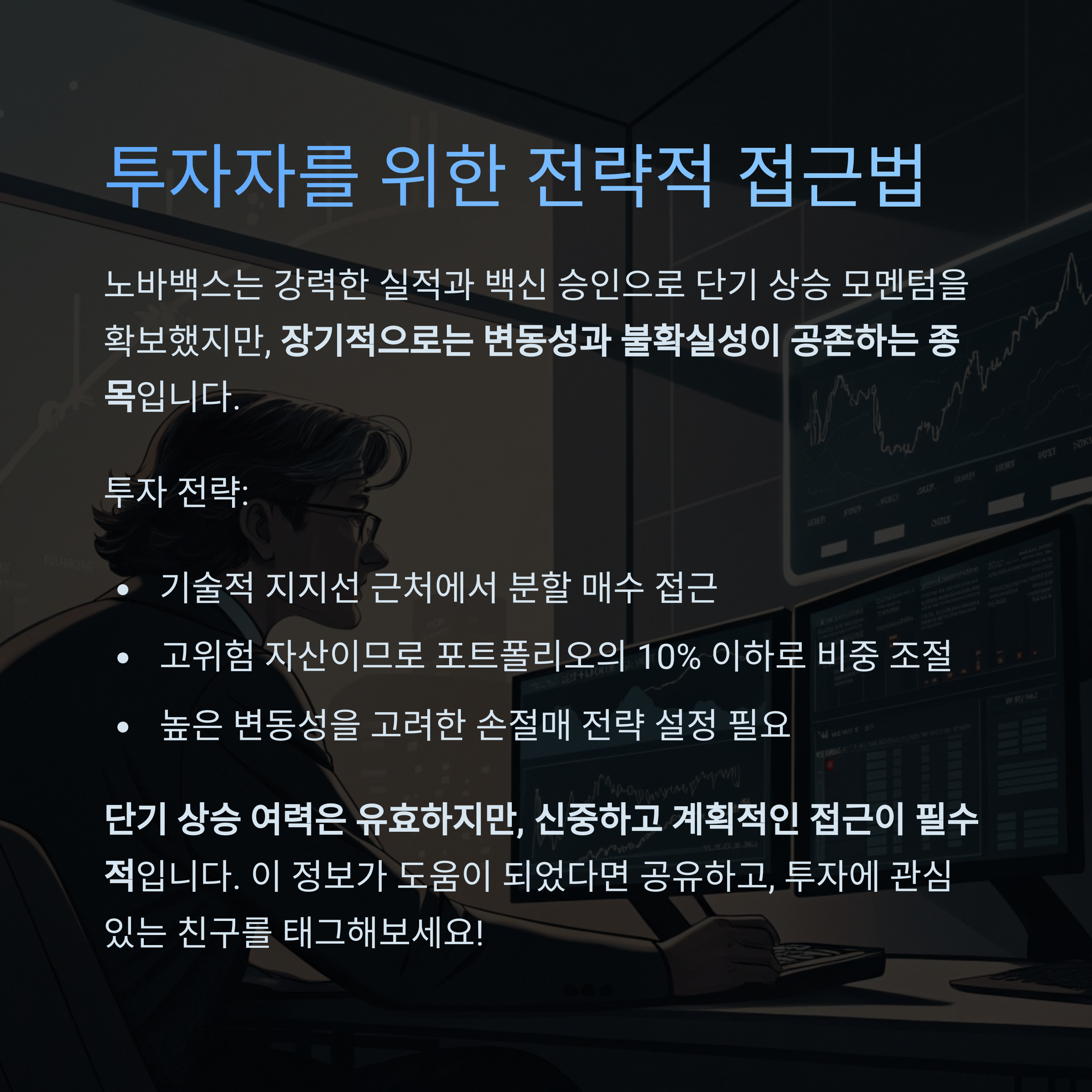 노바백스는 강력한 실적과 백신 승인으로 단기 상승 모멘텀을 확보했지만,