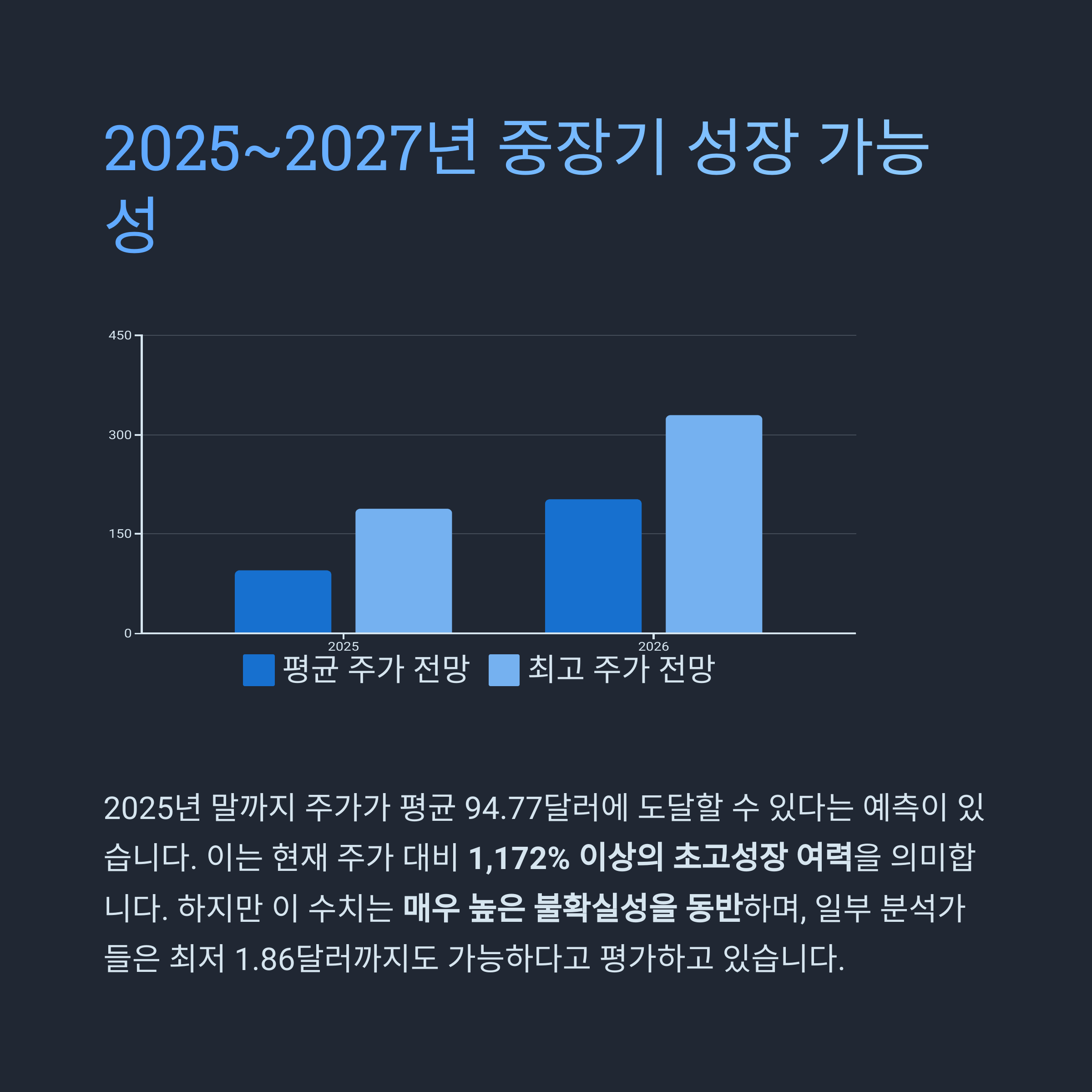 이는 현재 주가 대비 1,172% 이상의 초고성장 여력을 의미하며, 최고치는 187.67달러까지 상정되고 있습니다.