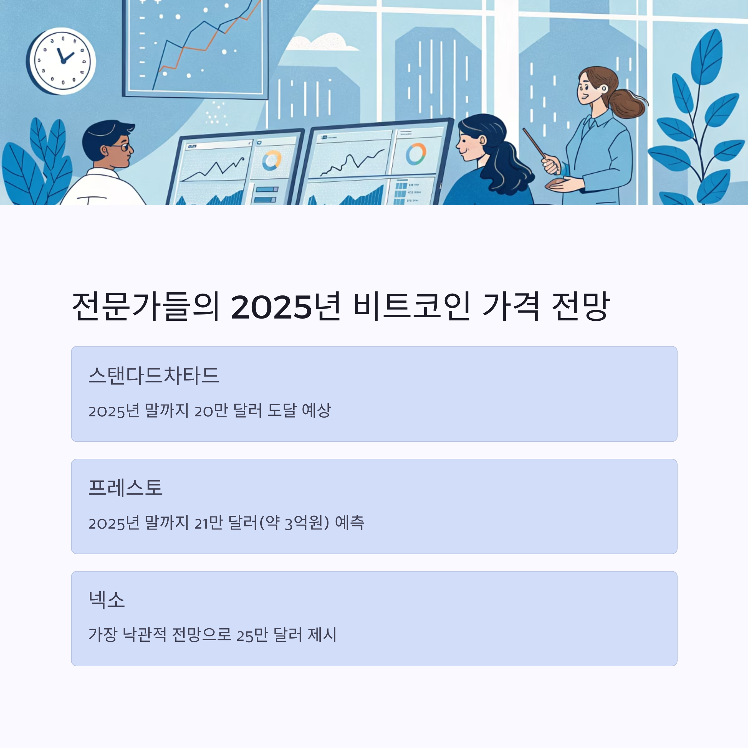다양한 리서치 기관과 분석가들이 공통적으로 제시한 2025년 비트코인 가격 전망은 중장기 상승세에 무게를 두고 있습니다.