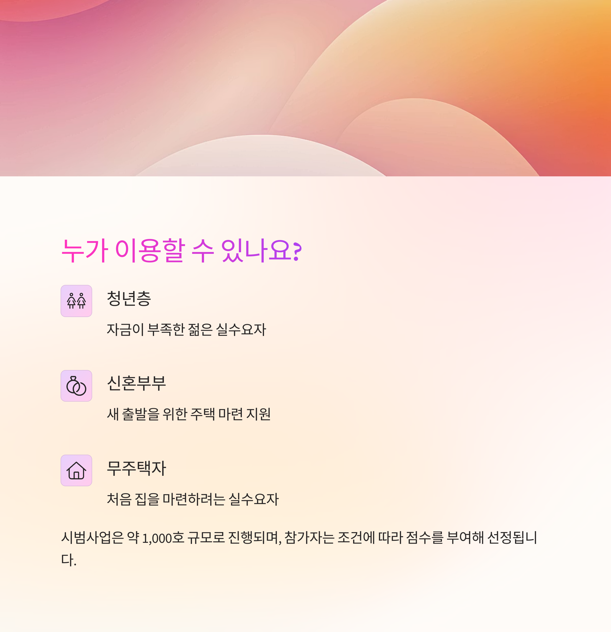 - 시범사업 참가자는 무주택자 등의 조건에 따라 점수를 부여해 선정