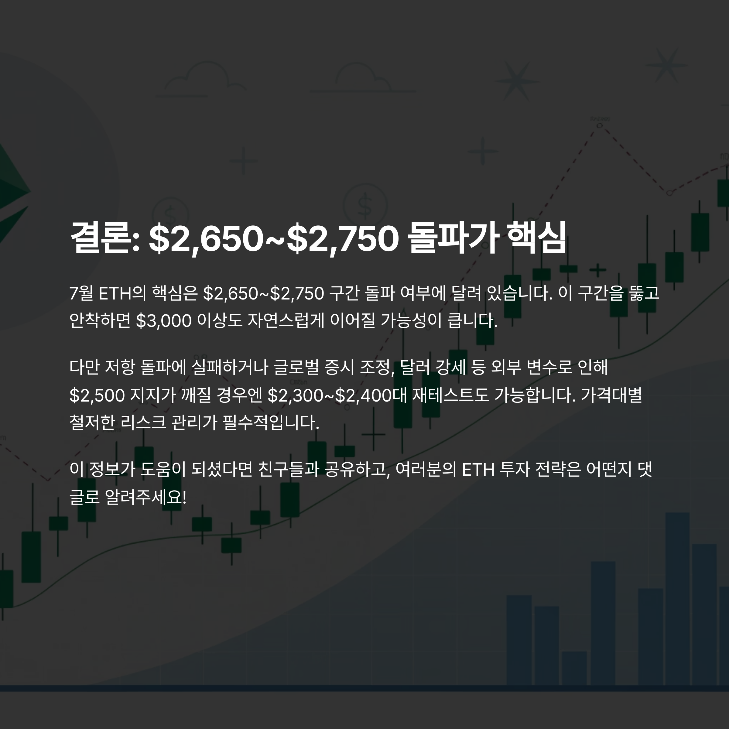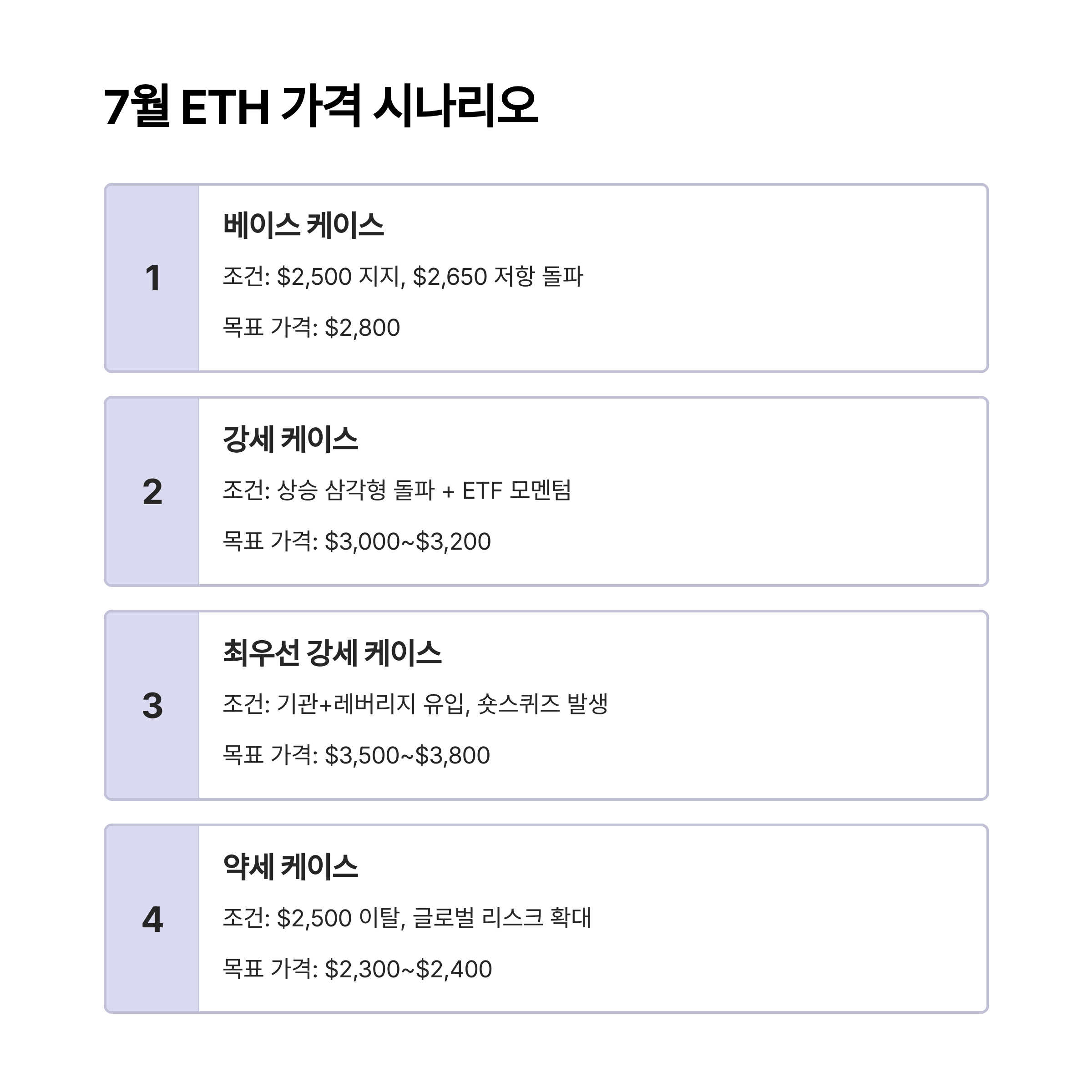 ETH의 7월 가격 흐름을 시나리오별로 정리하면 다음과 같습니다.