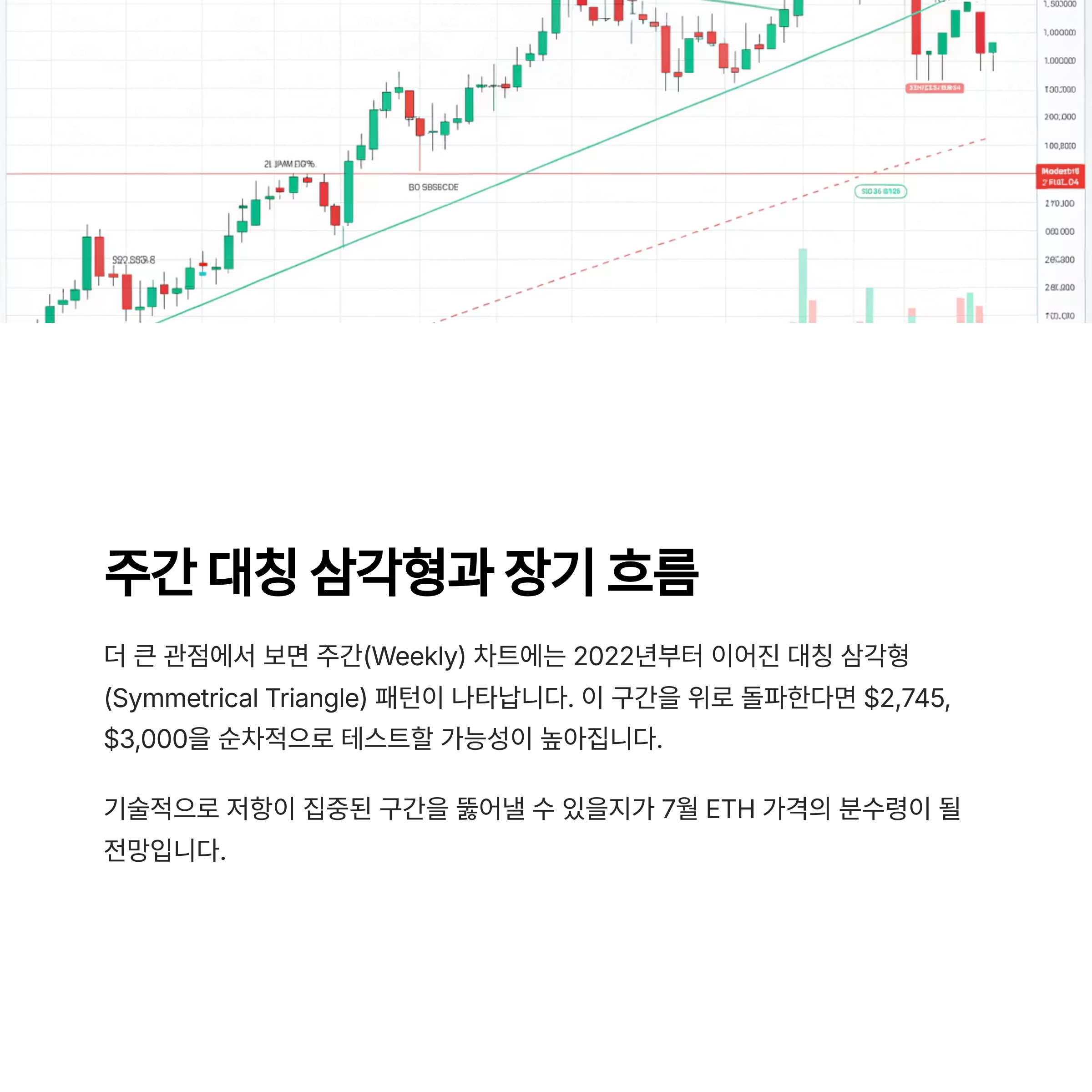 7월 이더리움(ETH)은 주요 지지선 위에서 안정적인 흐름을 이어가며 $2,800 돌파를 노리고 있습니다. 상승 삼각형 패턴과 ETF 기대감, 온체인 강세 지표가 동시에 작용하면서 투자 심리는 점점 강세 쪽으로 기울고 있는데요. 이번 글에서는 7월 ETH의 기술적 분석과 기관 투자, 네트워크 동향을 종합적으로 살펴보고 주요 가격 시나리오까지 자세히 정리해 보겠습니다.
