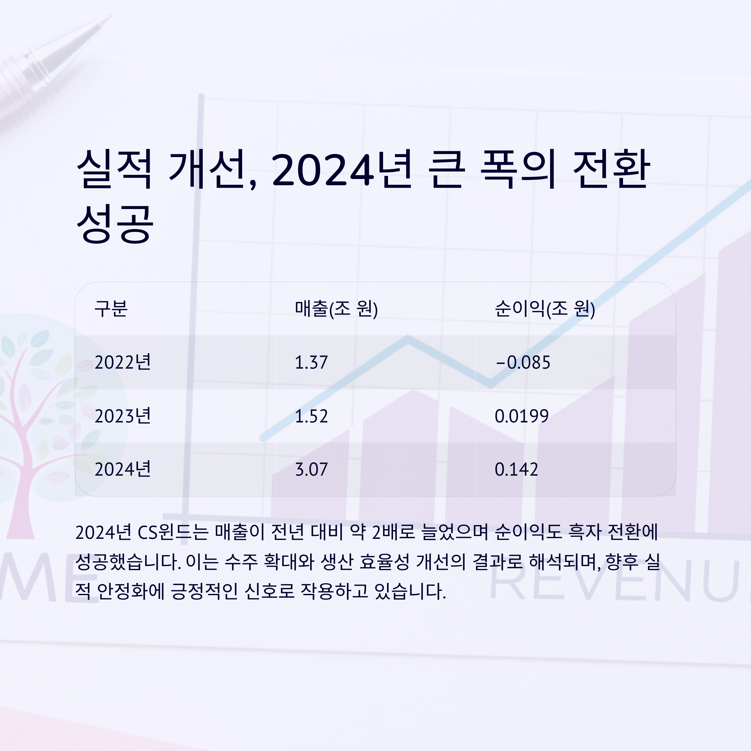 CS윈드는 2024년을 기점으로 실적이 급격히 개선되었고