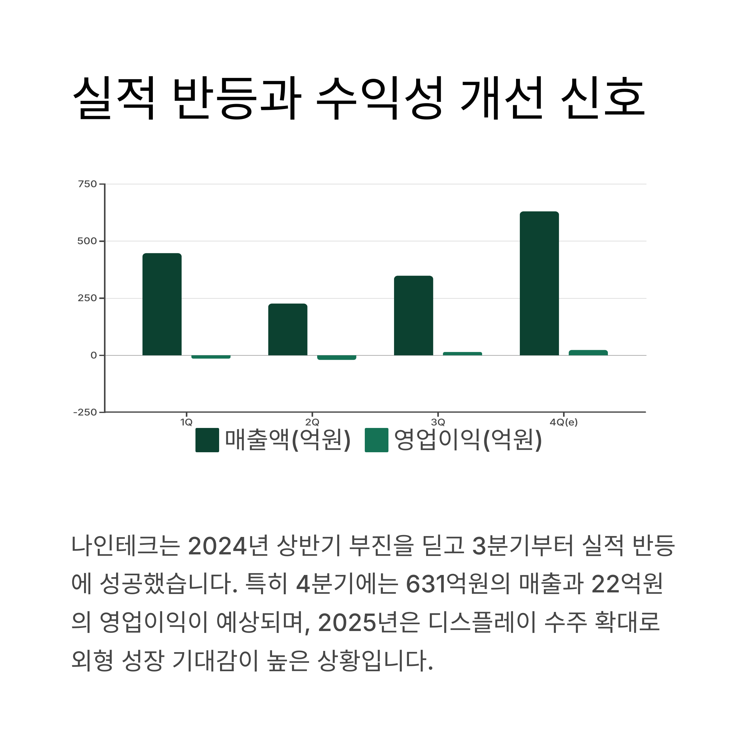 나인테크는 이차전지 및 디스플레이 장비 분야의 기술력을 기반으로 FO-PLP, 유리기판 장비, 맥신 소재 등 미래 산업을 주도할 핵심 기술을 확보하고 있습니다. 특히 글로벌 반도체 및 전기차 산업의 패러다임 변화 속에서 기술 혁신과 고객 다변화 전략으로 시장 내 입지를 빠르게 확장 중이며, 주가 역시 이를 반영하는 흐름을 보이고 있습니다.