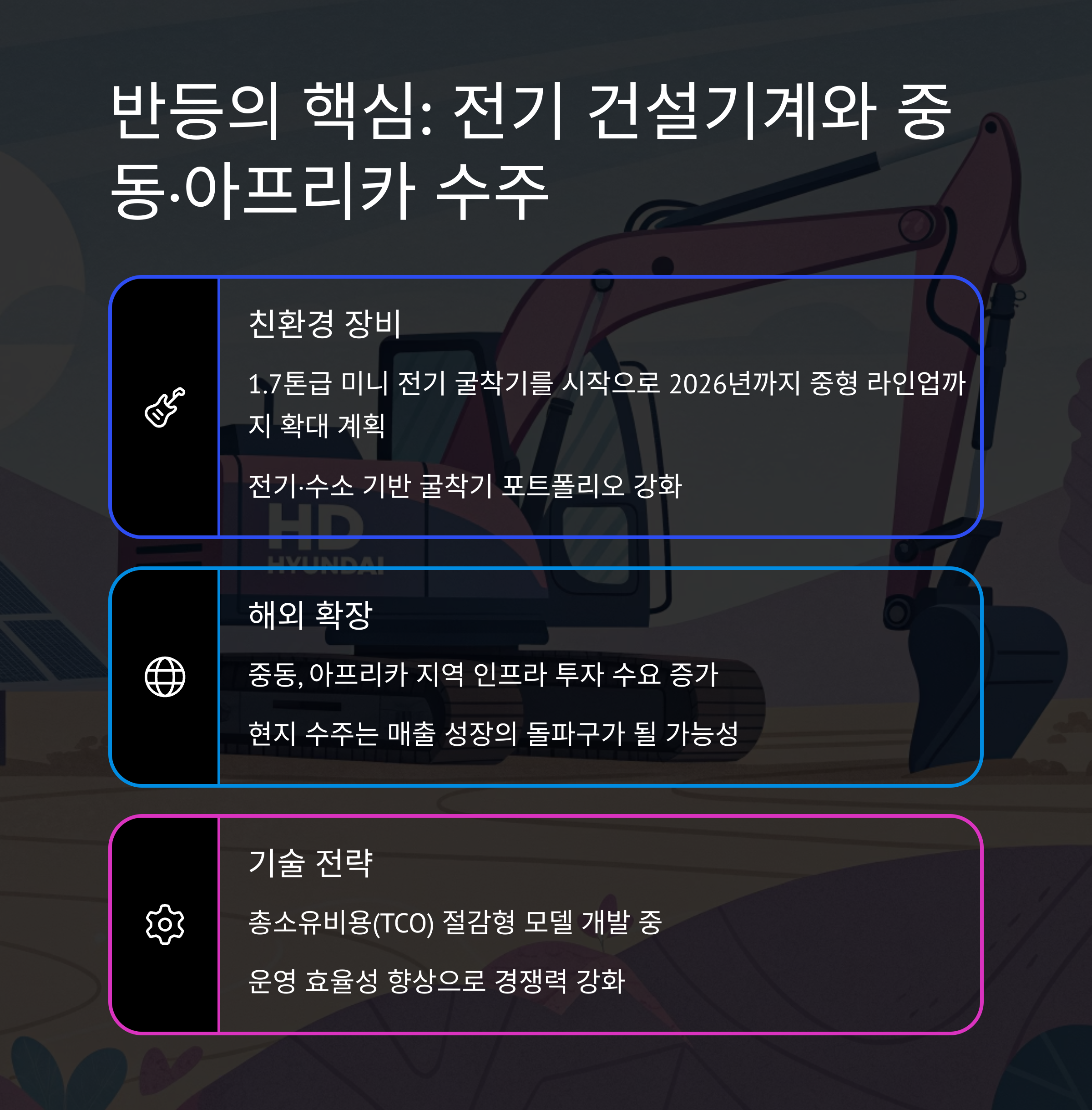 반등의 핵심: 전기 건설기계와 중동·아프리카 수주