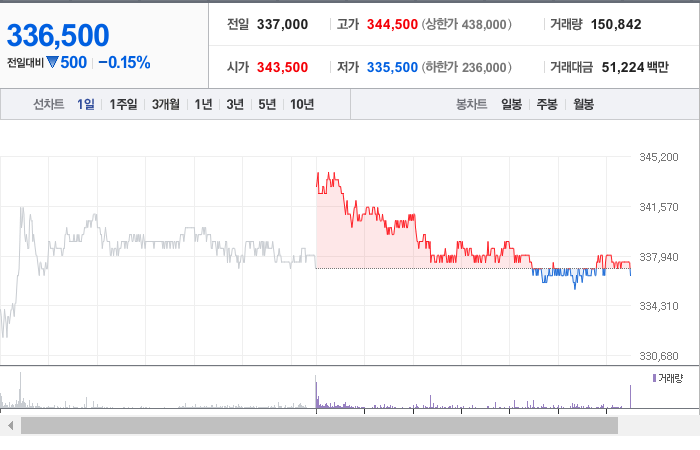 현재 LG에너지솔루션의 주가는 336,500원으로, 전일 대비 500원이 하락했습니다. 이 회사의 주주 현황을 살펴보면, 81.84%의 지분을 보유하고 있습니다. LG에너지솔루션은 전자 장비 및 기기 분야의 기업으로, 현재 주가는 336,500원입니다. 이 회사의 시가총액은 78조 7,410억 원이며, 발행된 주식 수는 234,000,000주입니다. 외국인 보유 비중은 4.76%이며, 장중 거래량은 151,534주에 달했습니다. 또한, LG에너지솔루션의 매출액은 61,287억 원에 이릅니다.