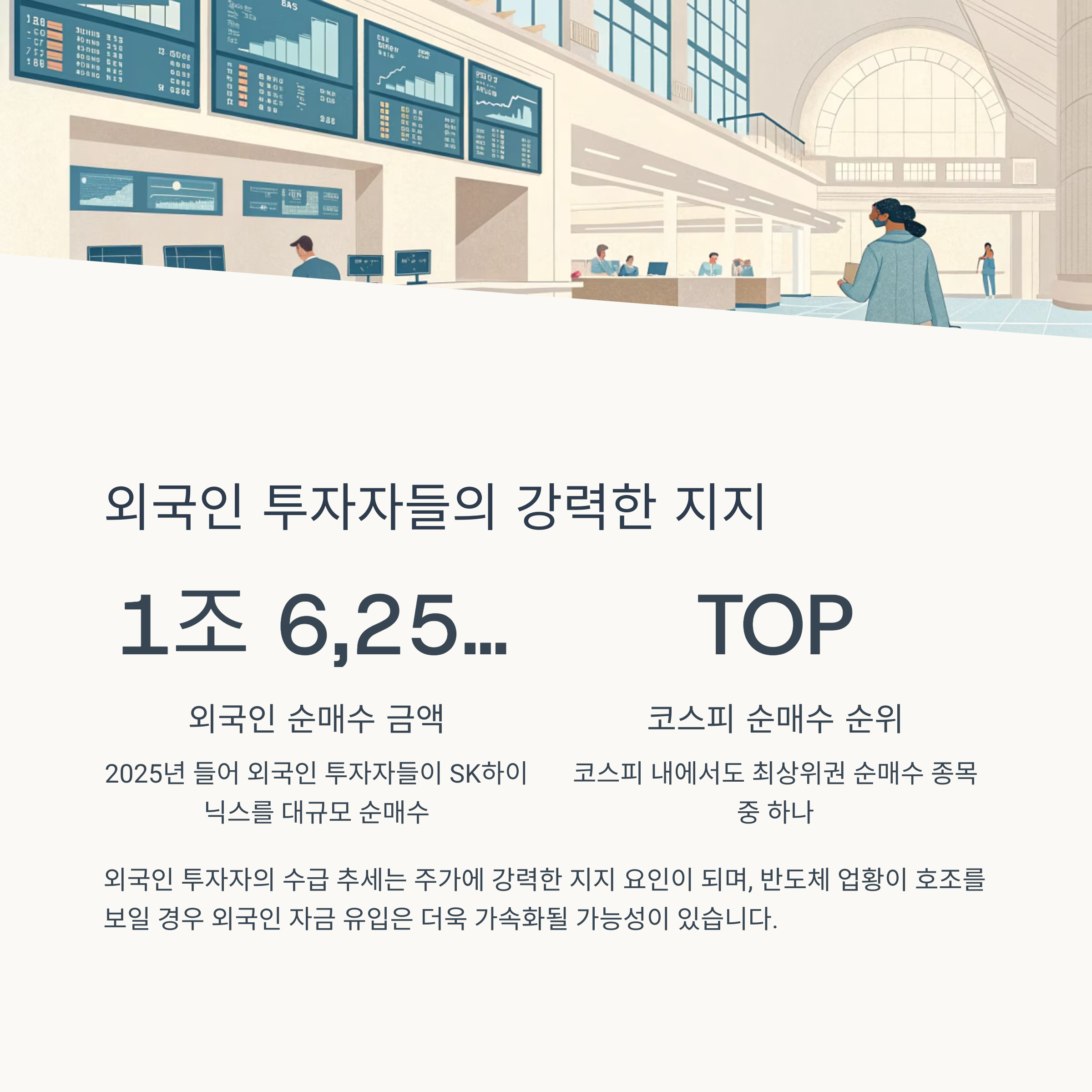 2025년 들어 외국인 투자자들은 SK하이닉스를 1조6,253억 원어치 순매수하였습니다.