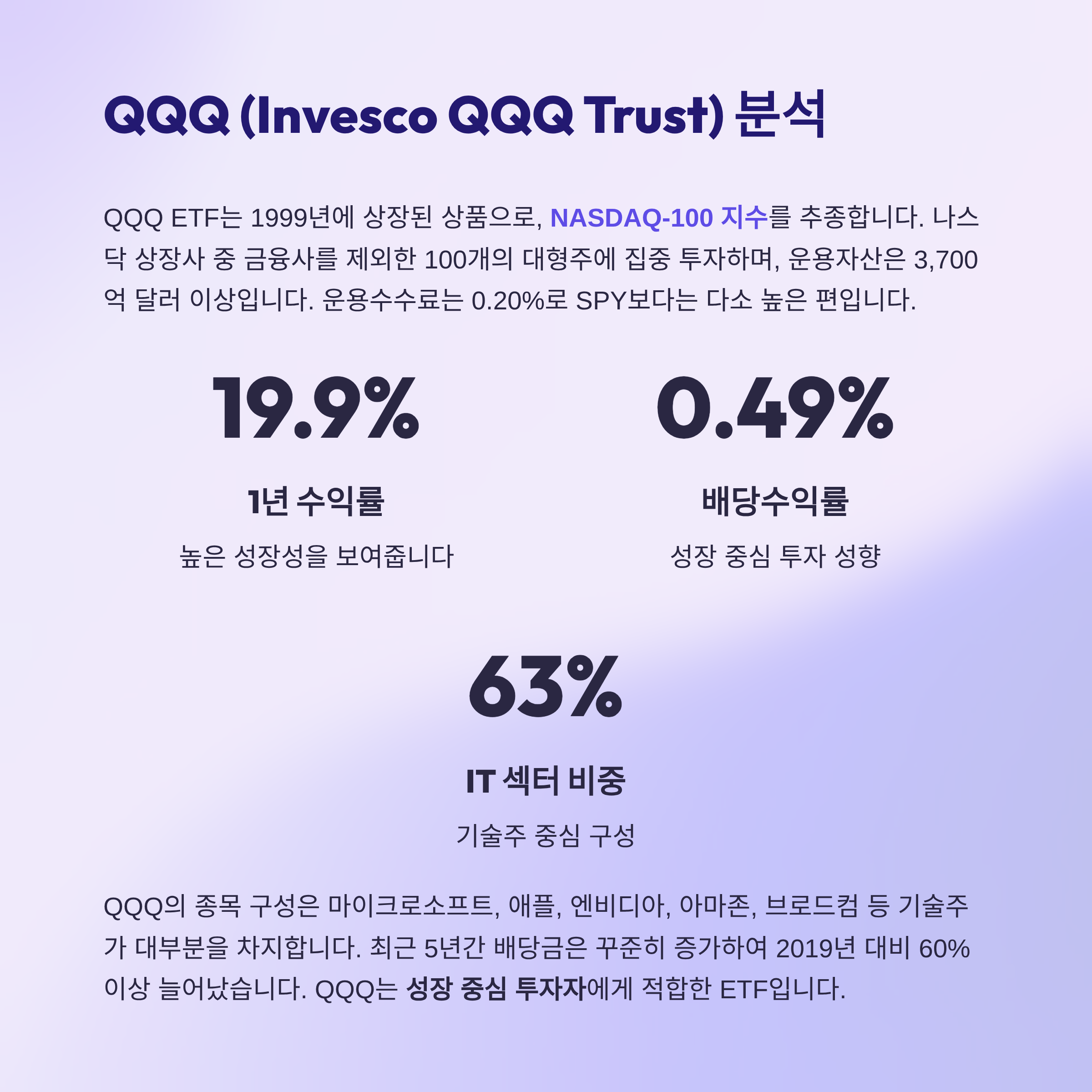• 기술주 성장과 높은 수익률을 기대한다면 → QQQ ETF