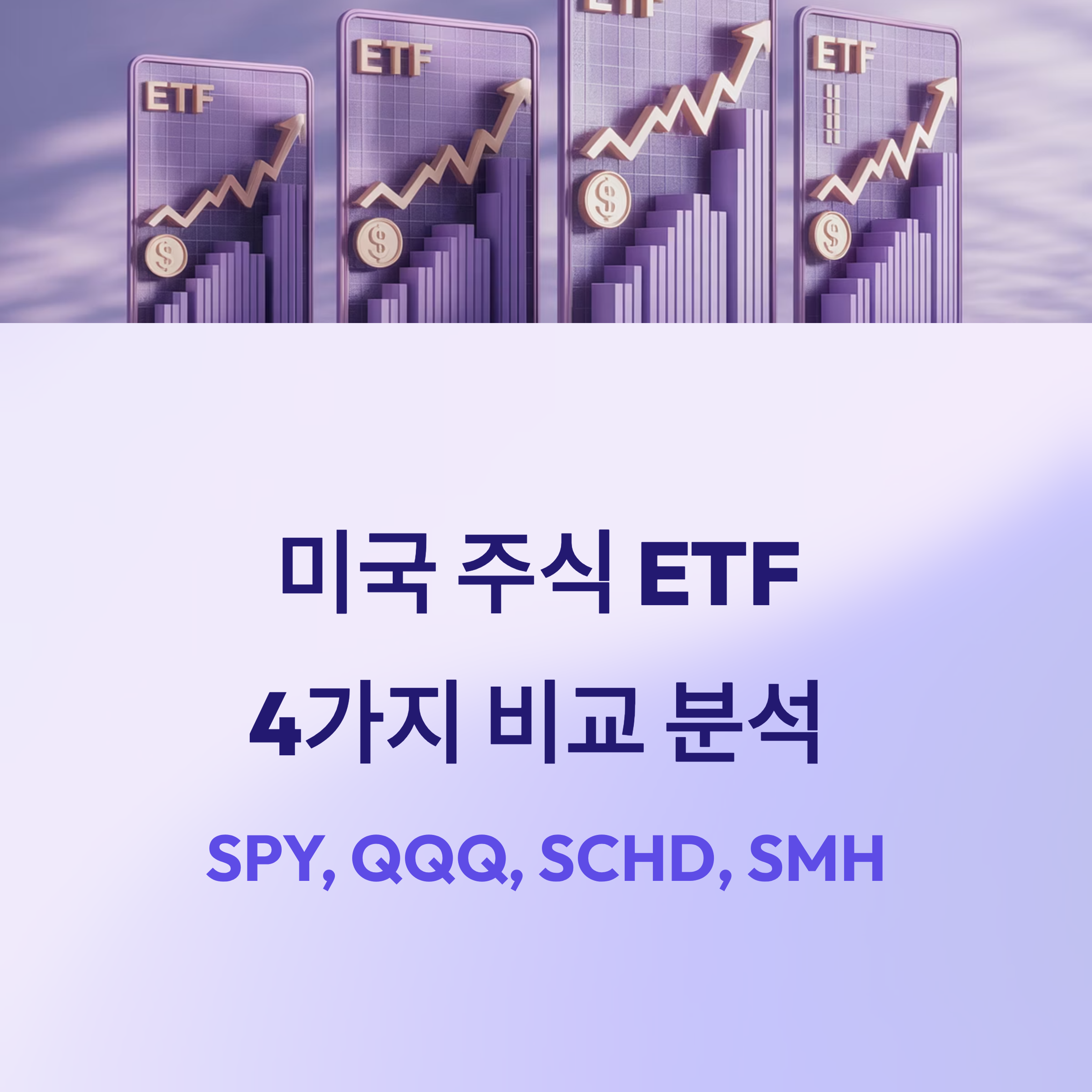 미국 주식 시장에서 ETF(Exchange Traded Fund)는 개별 종목 투자보다 안정적이면서도 손쉽게 분산투자가 가능하다는 점에서 많은 투자자들에게 사랑받고 있습니다. 특히 전 세계에서 가장 많이 거래되는 SPY ETF, 성장주에 집중된 QQQ ETF, 안정적인 배당주 중심의 SCHD ETF, 그리고 반도체 섹터에 집중 투자하는 SMH ETF는 서로 다른 투자 성향과 목적에 따라 선택할 수 있는 대표적인 상품입니다. 이 글에서는 네 가지 ETF의 특징, 운용사, 수익률, 배당, 주요 구성 종목을 비교 분석하고 투자 전략까지 살펴보겠습니다.